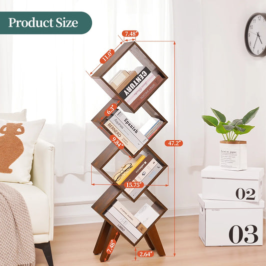 White Bookshelf, Wood Small Bookcase 4-Tier Book Shelf, Tall Bookcases Book Organizer, Modern Bookshelves Floor Standing for Cds/Books in Small Spaces, Living Room, Home Office, Bedroom